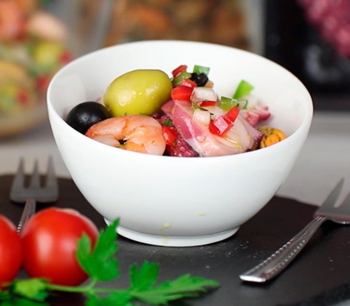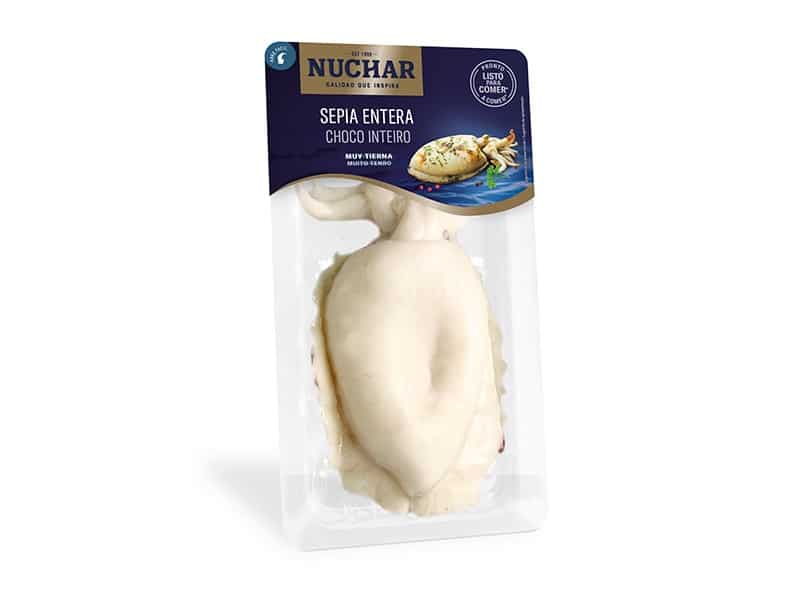 In a non-stick frying pan add a tablespoon of oil and heat the whole cuttlefish for 5 minutes over medium heat on both sides, until golden brown. Add the garlic and parsley dressing.