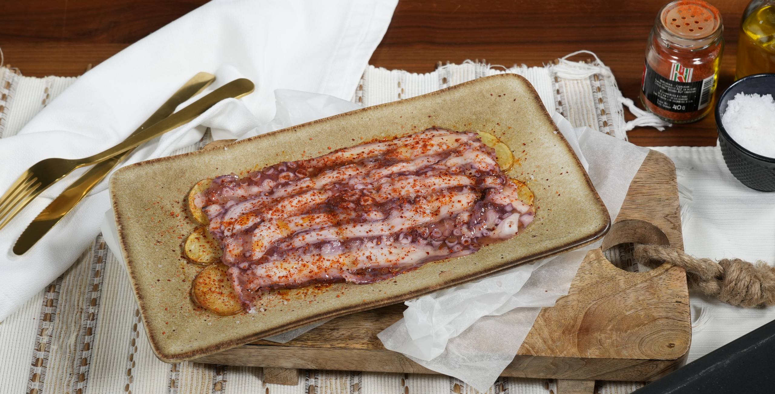 Sin abrir ni perforar el envase de Carpaccio de Pulpo Cocido NUCHAR, calienta en el microondas durante 30 segundos.