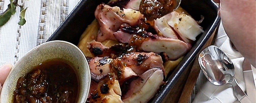 ADOBO: Mezclar en un recipiente 2 dientes de ajo pelados y machacados, aceite de oliva, pimentón picante, una cucharadita de orégano, sal, pimienta, cebolla caramelizada y una cucharada de vinagre de Jerez.